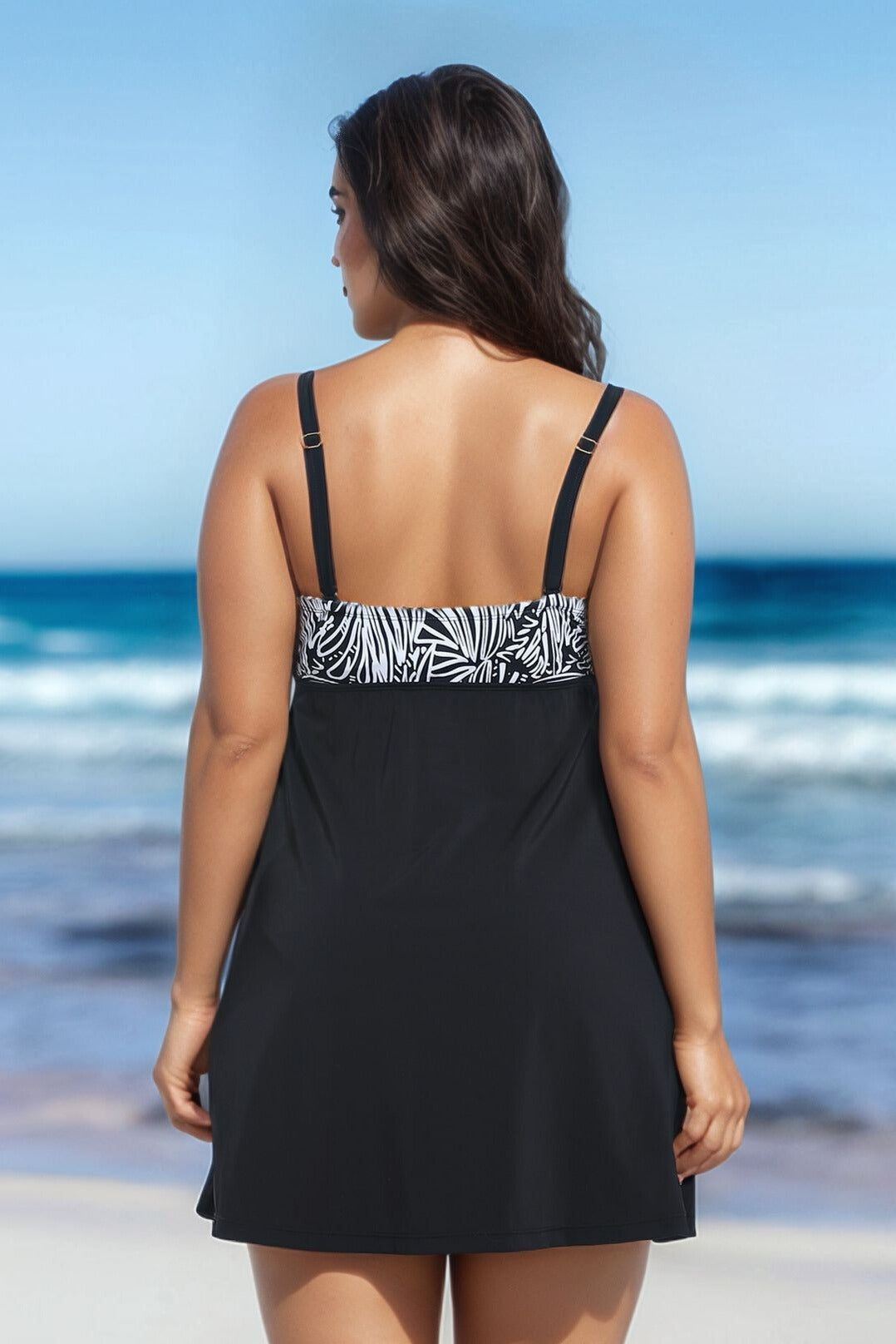 FULLFITALL - Black White Jungle Tie Front Underwire Swimdress