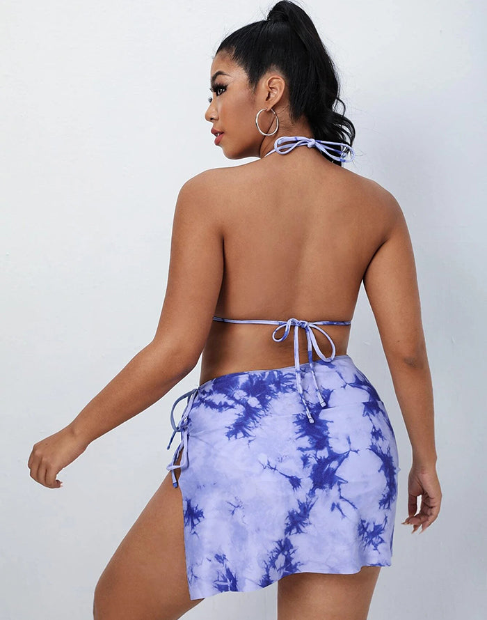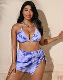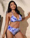 FULLFITALL-Blue Halterneck Sideways Lace-Up Bikini Set