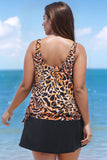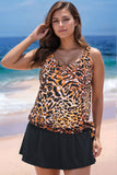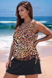 FULLFITALL - Leopard Print Side Tie Blouson Tankini With A-Line Swim Skirt