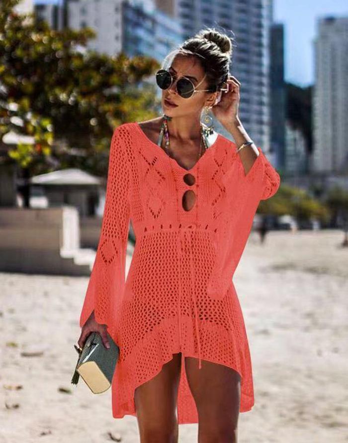 FULLFITALL - Orange Knitted Hollow Beach Sunscreen Blouse