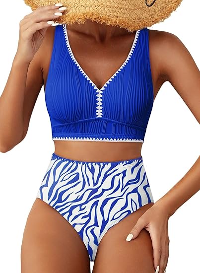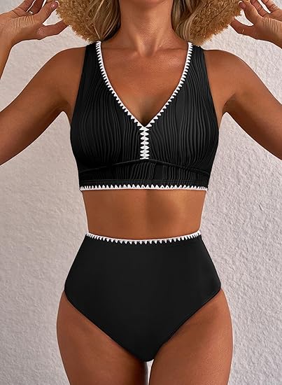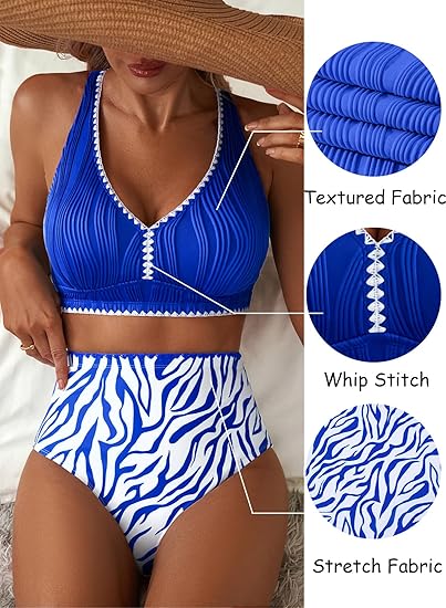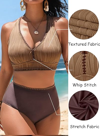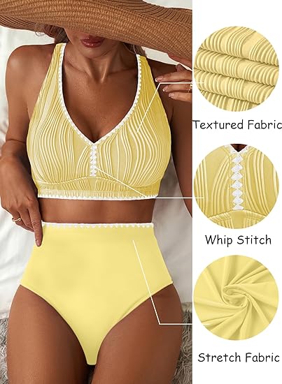 - Fashion Design: Get ready to shine in our high waisted bikini set! Bestselling bikini features a unique Textured swim top for a fashion-forward look. Whip Stitch detail and colorblock effect make this 2 piece swimsuit a standout swim suits for 2026