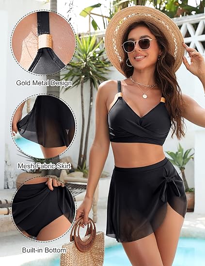 • High-Waisted Tummy Control Bottom: The high-waisted design provides excellent tummy control without feeling restrictive, while the sarong-like skirt overlay adds extra coverage and creates a flattering, confident silhouette