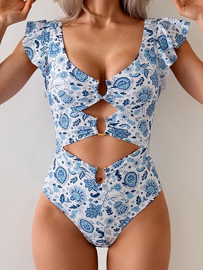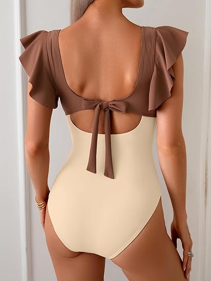 • Elegant Ruffle Sleeves: The chic ruffle sleeves offer extra shoulder coverage and a feminine touch, making it stand out from basic one-pieces.